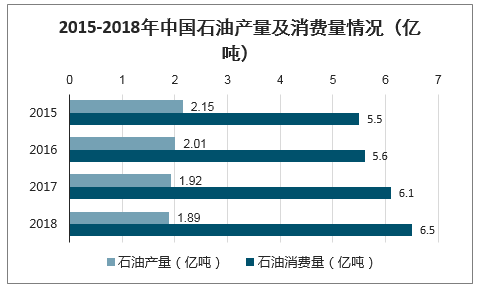 2015-2018年中國石油產(chǎn)量及消費量情況(億噸)