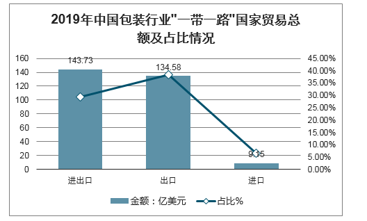 2019年中國包裝行業(yè)"一帶一路"國家貿(mào)易總額及占比情況