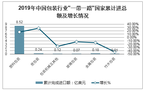 2019年中國包裝行業(yè)"一帶一路"國家累計進(jìn)總額及增長情況