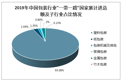 2019年中國包裝行業(yè)"一帶一路"國家累計進(jìn)總額及子行業(yè)占比情況