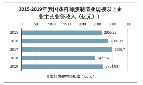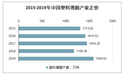 2015-2019年中國塑料薄膜產(chǎn)量走勢