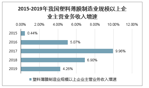 2015-2019年我國塑料薄膜制造業(yè)規(guī)模以上企業(yè)主營業(yè)務(wù)收入增速