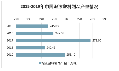 2015-2019年中國泡沫塑料制品產(chǎn)量情況