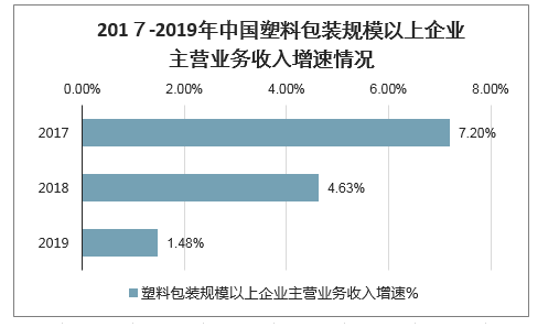 2017-2019年中國塑料包裝規(guī)模以上企業(yè)主營業(yè)務(wù)收入增速情況